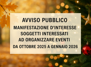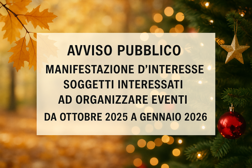 AVVISO PUBBLICO PER MANIFESTAZIONE D’INTERESSE PER LA RICERCA DI SOGGETTI INTERESSATI AD ORGANIZZARE EVENTI NEL PERIODO OTTOBRE 2025 – GENNAIO 2026