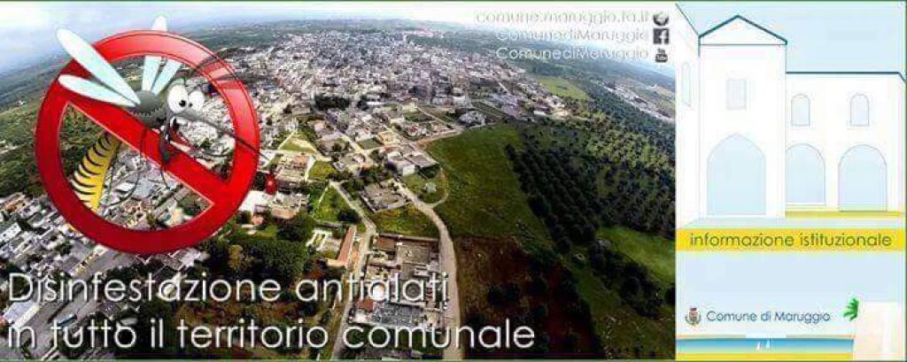 Sì comunica a tutta la cittadinanza che dalle ore 23:00 di oggi 17 Agosto e fino alla mattinata di domani, su tutto il territorio comunale verrà eseguito servizio di disinfestazione antialati.